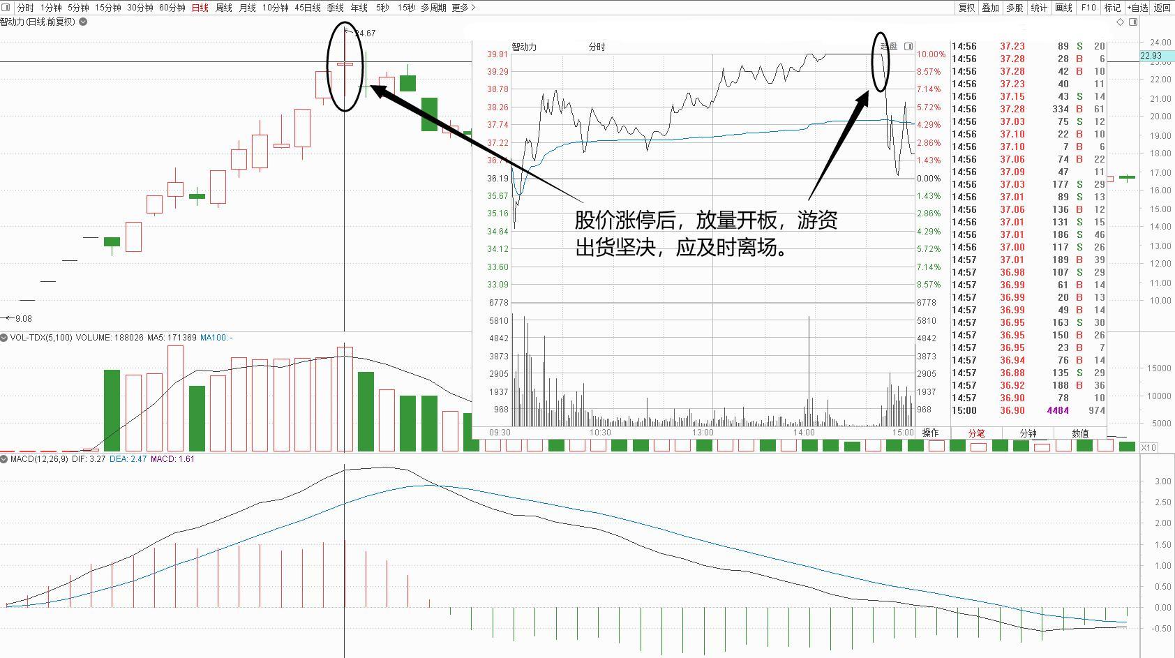 (2)注意涨停板打开的频次、持续时间和对应量能水平,这与反转可靠性呈正比关系。